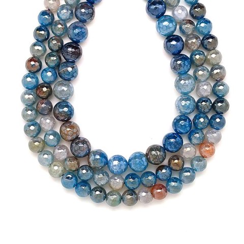 Achát fazettált aura szinezett kék golyó 10mm– ékszerkészítő alapanyag (füzér)