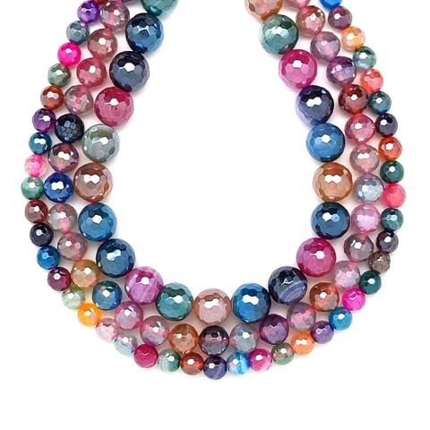 Achát fazettált aura szinezett mix golyó 8mm – ékszerkészítő alapanyag (füzér)