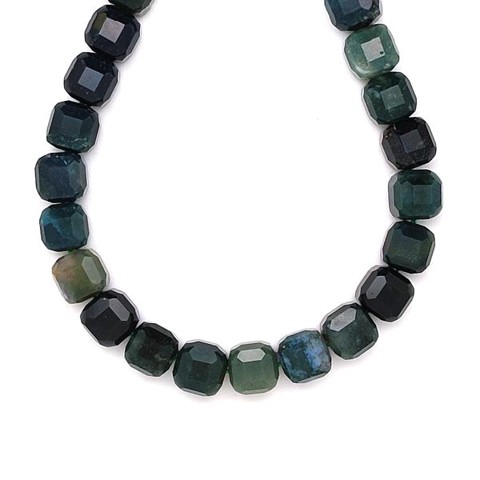 Achát moha fazettált kocka 8-9mm – ékszerkészítő alapanyag (füzér)
