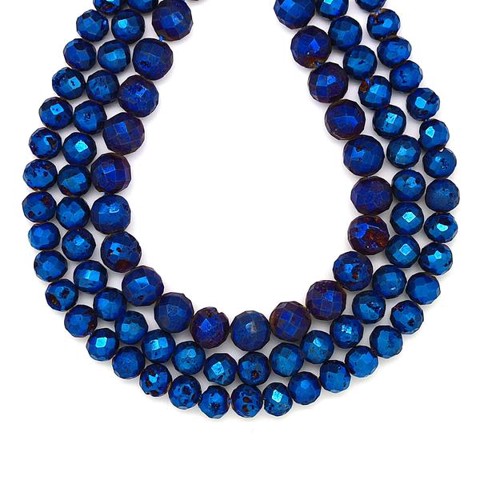 Achát geódás fazettált sötét kék aura golyó A 8mm – ékszerkészítő alapanyag (füzér)