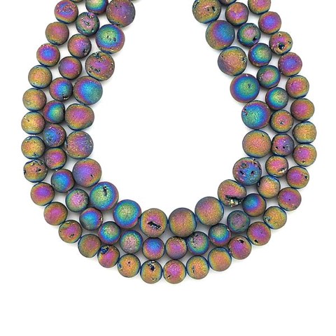 Achát geódás matt golyó szivárvány A 10mm – ékszerkészítő alapanyag (füzér)