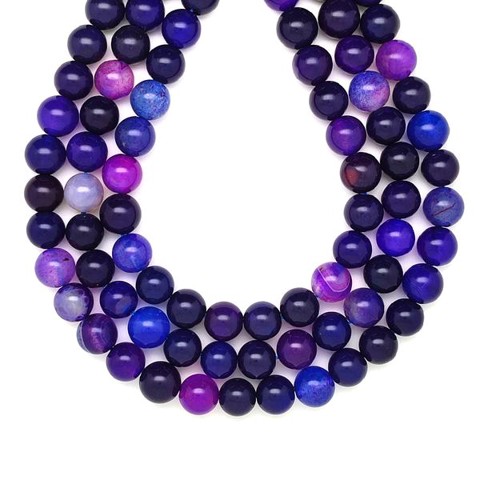 Achát szinezett sávos sötét lila golyó 10mm – ékszerkészítő alapanyag (füzér)