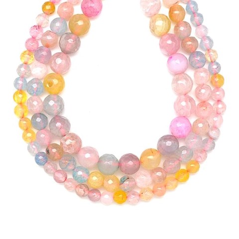Achát tűz szinezett fazettált pasztell golyó 7-8mm – ékszerkészítő alapanyag (füzér)