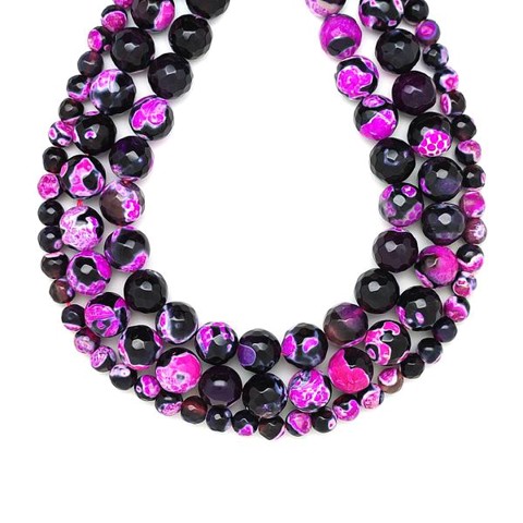 Achát tűz fazettált szin fekete lila golyó 10mm – ékszerkészítő alapanyag (füzér)