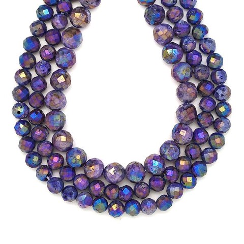 Achát geódás fazettált lila aura golyó A 10mm – ékszerkészítő alapanyag (füzér)