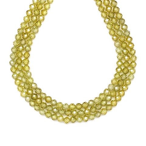Cirkon fazettált közép zöld golyó 4mm – ékszerkészítő alapanyag (füzér)