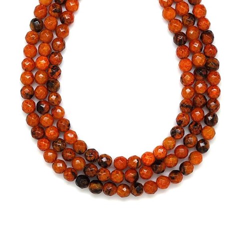 Achát hőkezelt fazettált narancs golyó 6mm– ékszerkészítő alapanyag (füzér)