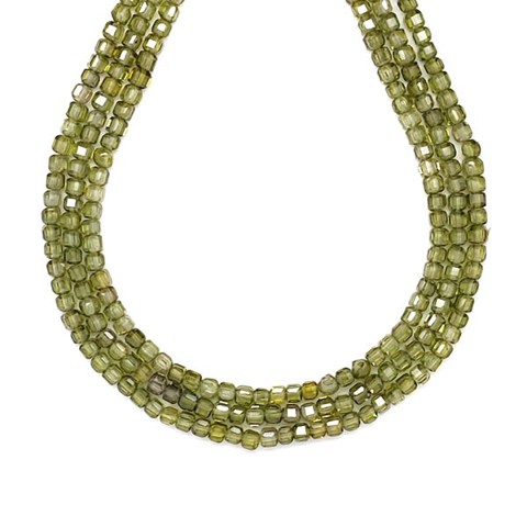 Cirkon fazettált világos zöld kocka 3x3mm – ékszerkészítő alapanyag (füzér)