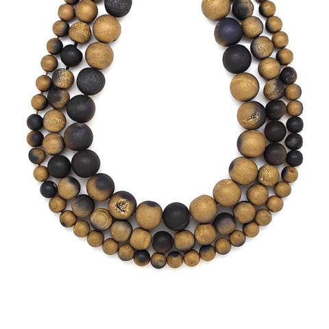Achát geódás matt golyó arany fekete 10mm– ékszerkészítő alapanyag (füzér)