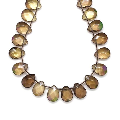 Füstkvarc aura fazettált csepp 12x10mm– ékszerkészítő alapanyag (füzér)