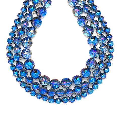 Aura kvarc fazettált háromszög kék golyó 8mm – ékszerkészítő alapanyag (füzér)