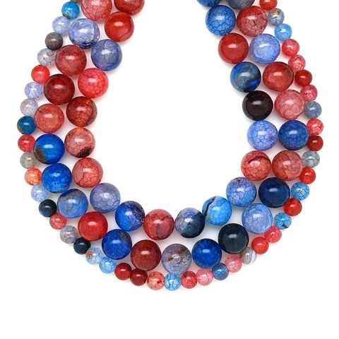 Achát hőkezelt szinezett kék piros golyó 6mm – ékszerkészítő alapanyag (füzér)