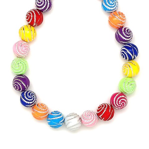 Műanyag spirál díszített színes golyó 9,5mm – ékszerkészítő alapanyag (füzér)