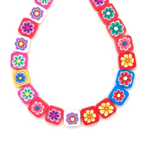 Műanyag vegyes virág négyzet 9,5x4,5mm – ékszerkészítő alapanyag (füzér)