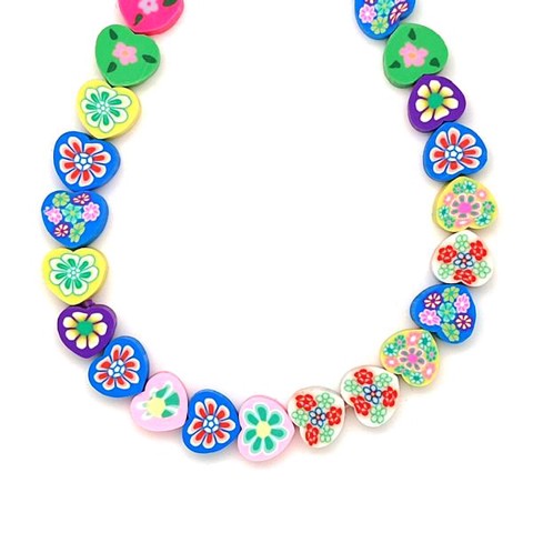 Műanyag vegyes virágos szív 9-10x8-9x4mm – ékszerkészítő alapanyag (füzér)