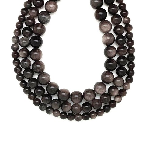 Obszidián ezüst golyó 9-10mm – ékszerkészítő alapanyag (füzér)