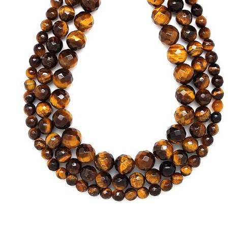 Tigrisszem fazettált golyó 10mm – ékszerkészítő alapanyag (füzér)
