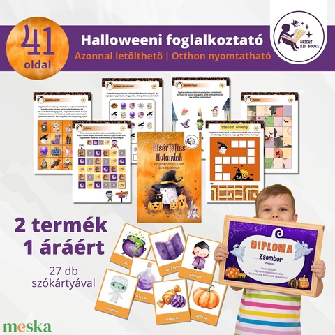 Halloweeni foglalkoztató óvodásoknak + 27db szókártya PDF