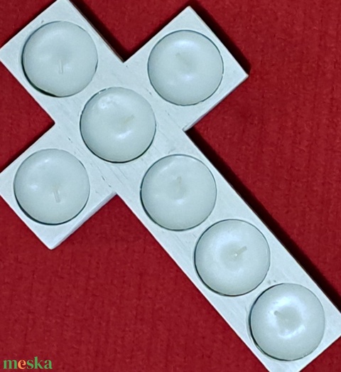 Ez a kereszt alakú mécsestartó nem csak a közelgő Mindenszentek ünnepére lehet aktuális, hanem alkalmas lehet egész éven át is, amikor eltávozott szeretteinkért szeretnénk gyertyát gyújtani. 7 mécsesnek ad helyet - minden mécses szimbolizálhat egy - egy Szentséget. A mécsestartó alapvetően fehér vagy natúr színben készül, de lehet egyéb színben is rendelni. Méretei: 14 x 23 x 3 cm.