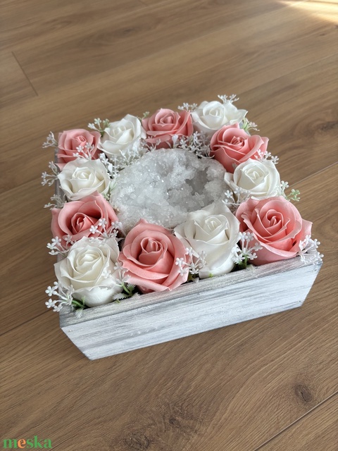 - Anyaga: ásvány, geóda, szappanrózsa, műanyag, fa