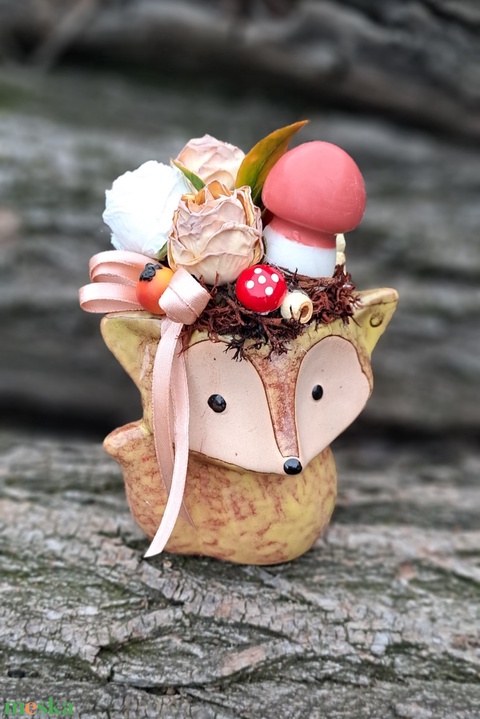 Róka formájú kerámia kaspóban őszi dekoráció illatgyertyával