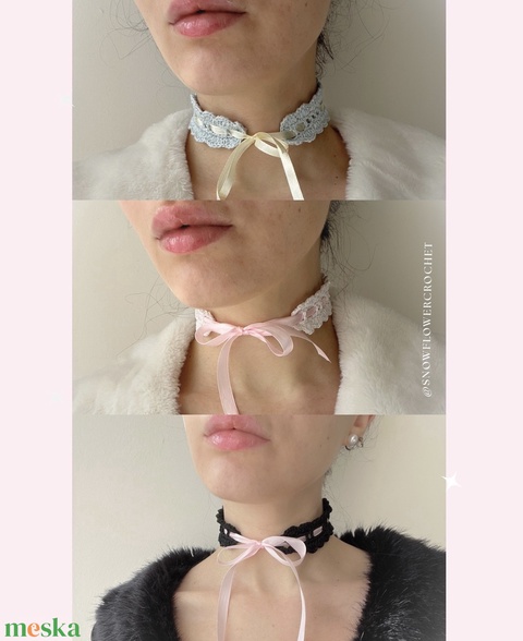 Sugarlace Choker - kézzel horgolt csipke choker nyaklánc, romantikus horgolt nyakdísz