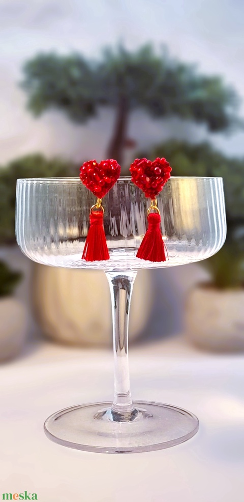 - Anyaga: filc, üveggyöngy, antiallergén fém szerelék, szilikon hátoldal, himzőcérna, bojt