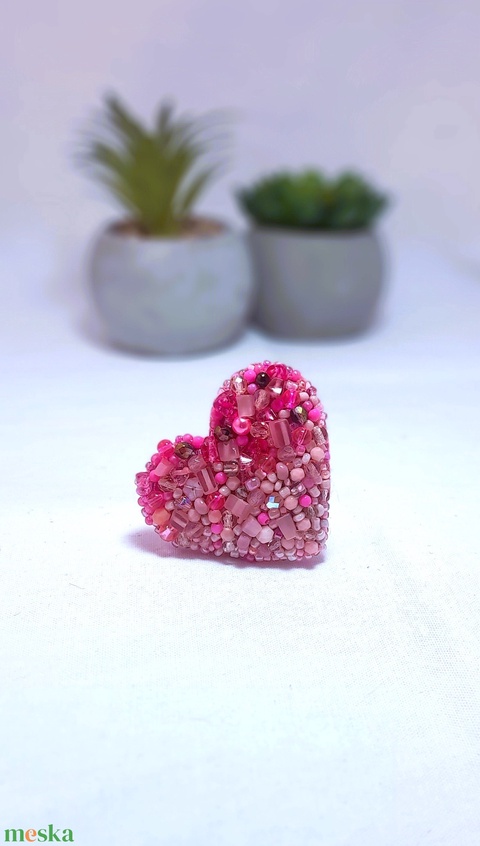 - Anyaga: filc, üveggyöngy, fém kitűző alap, himzőcérna