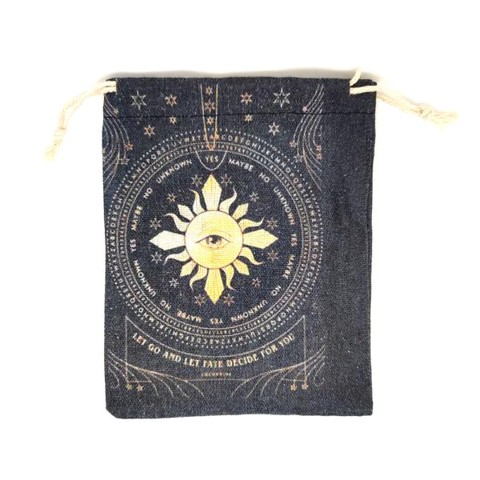 Szütyő Nap–Szem mintás 12,5×16 cm – spirituális ajándéktasak ékszerekhez és ásványokhoz