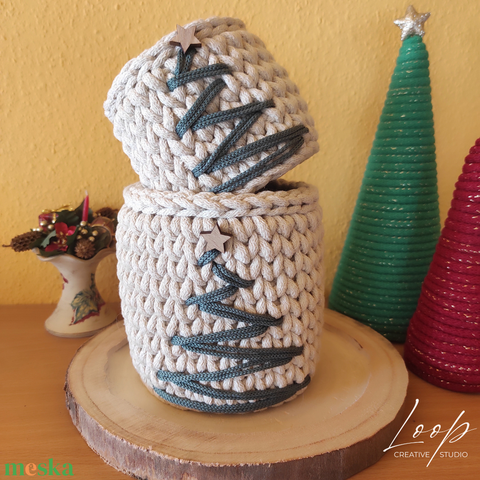 Horgolt karácsonyi kosár szett– kézműves tároló / dekoráció