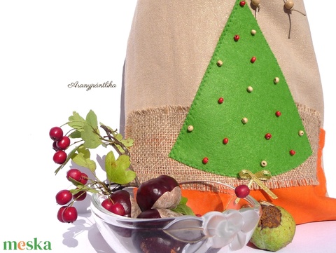 - Anyaga: lenes vászon, szalag, cérna, pamutvászon, zsákvászon, gyöngy, filc