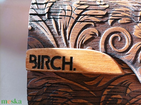 - Technika: famegmunkálás, gravírozás, pirográfia