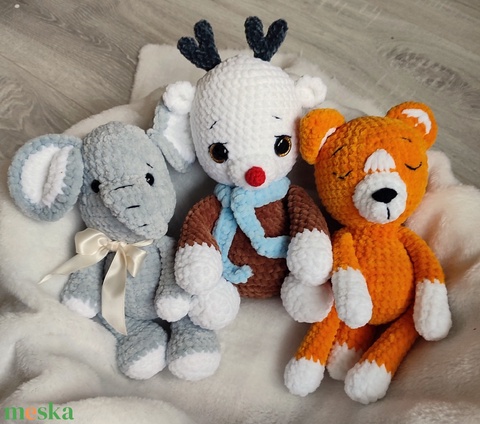 Karácsonyi csomag. 3 plüss egy csomagban!Réni,róka,elefánt