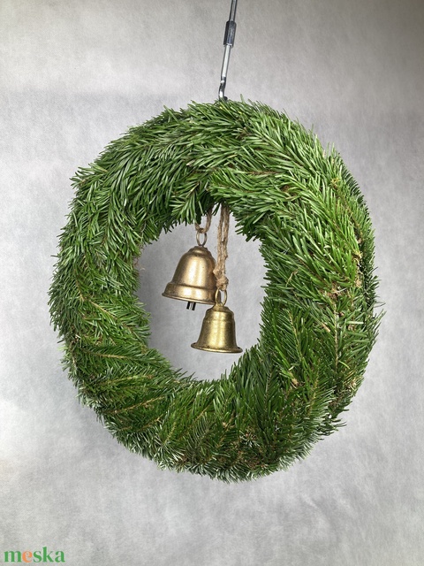44 cm átmérőjű alapra készült, két fémharangos, Nordmann fenyős, tovább is díszíthető koszorú (NK-17)