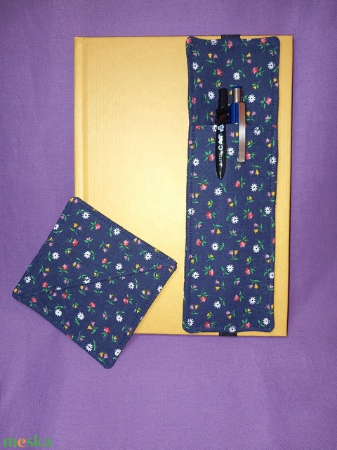 A/5 méretű keményfedeles füzetre húzható tolltartó és könyvjelző.