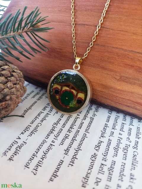 Hobbit, Gyűrük Ura ihlette kézzel készült epoxy gyanta, réz nyaklánc