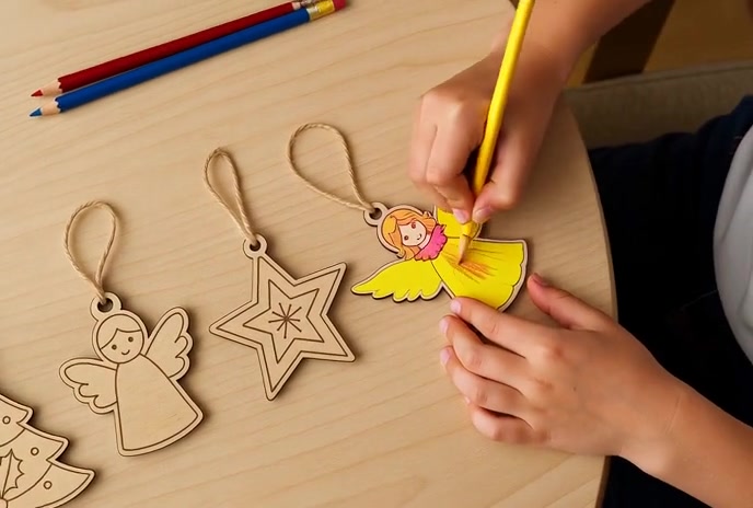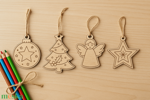Színezhető karácsonyfadíszek fából – 5 darabos szett