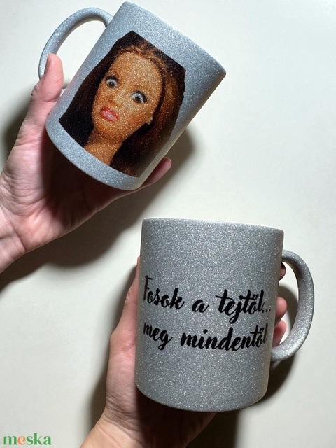 Fosok a tejtől…meg mindentől bögre x Barbie bögre - egyedi ezüst, csillogós kivitelben