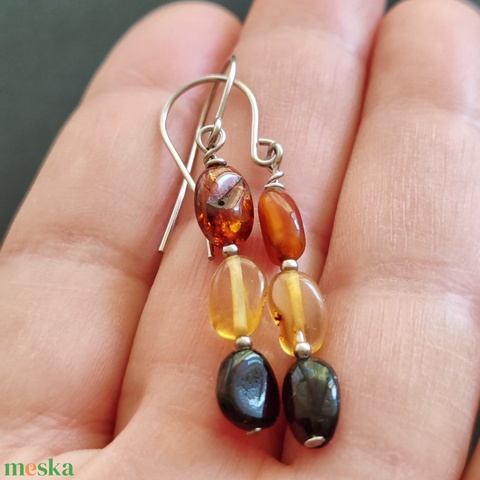 - Anyaga: nemesacél fülbevaló alap, nemesacél köztes, borostyán nugett