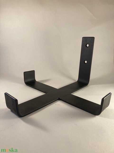 Laposacélból hajlított és hegesztett fali virágtartó fekete színben, mely alkalmas akár nehezebb növények tárolására is.