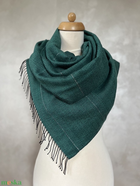 Kézzel szőtt merinó gyapjú sál - Türkíz