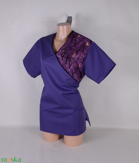 Fák és hold mintás tunika egészségügyi/óvónői/szépségipari munkaruha
