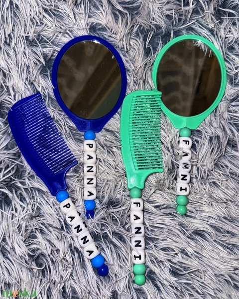 Névre szóló fésű–tükör szett gyöngyös díszítéssel