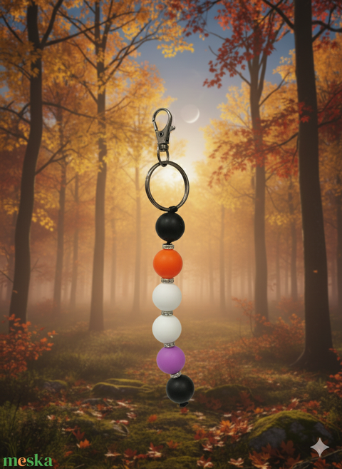 - Anyaga: szilikon gyöngy, ezüst köves összekötő, kulcstartó, fix fonal