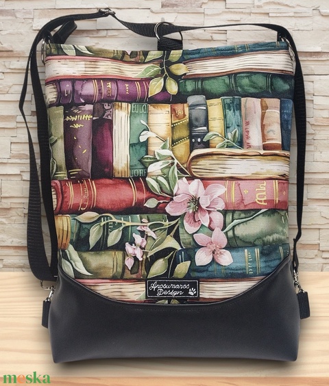 Retro könyvek - Mosolyvonalas hátulzsebes 3in1 textilbőr hátizsák univerzális táska