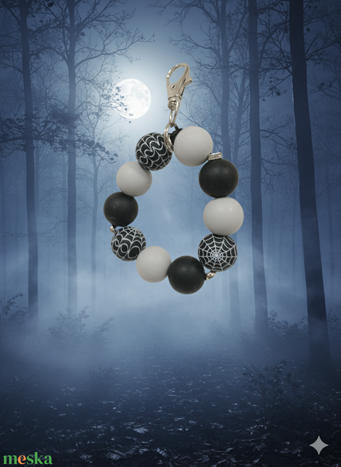 - Anyaga: kulcstartó, szilikon gyöngy, ezüst színű, kerek, ezüst színű kerek lapos összekötő gyöngy