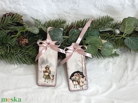 Vintag karácsonyfadísz rózsaszín szalaggal