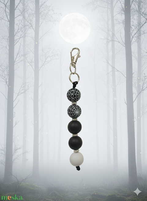 - Anyaga: szilikon gyöngy, ezüst köves összekötő, kulcstartó, fix fonal