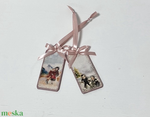 Karácsonyfadísz rózsaszín szalaggal gyerekek