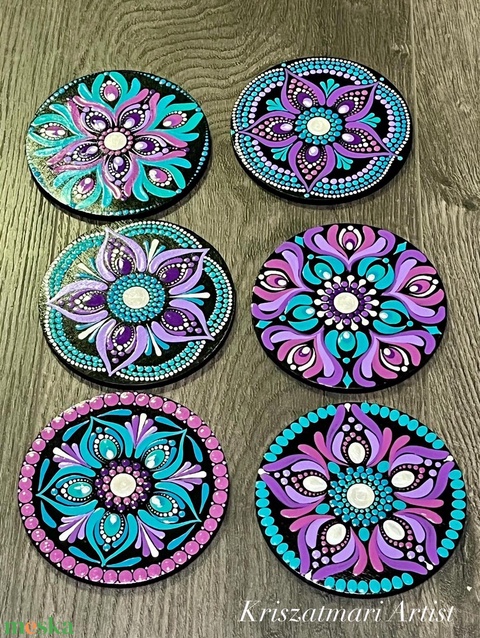 Lila harmónia – kézzel festett mandalás alátét készlet(10 cm)